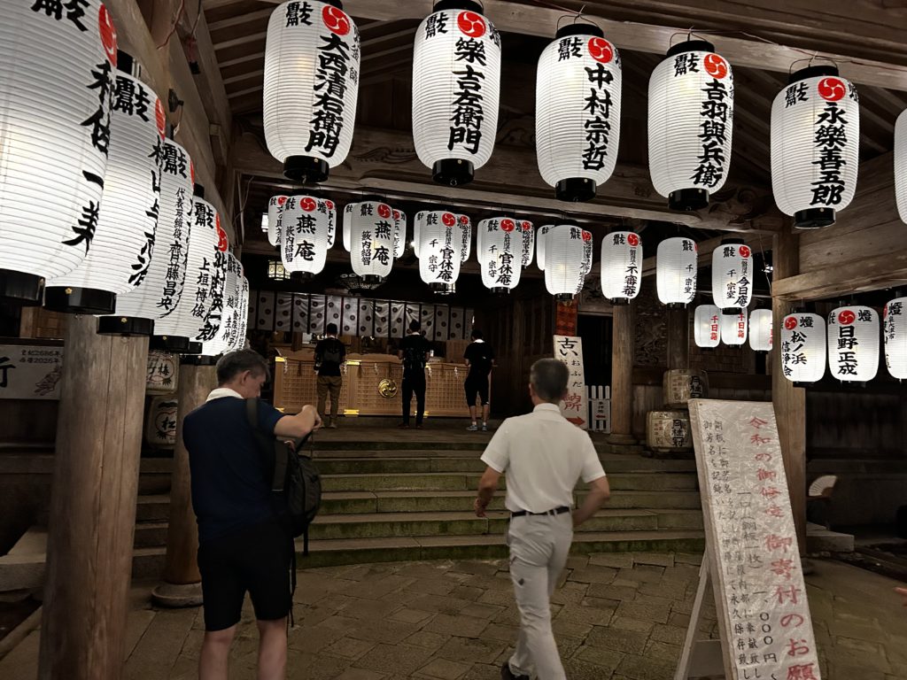 「おのぼりやす~」 「おくだりやす~」と 掛け声をかけあって、沢山の方が参拝されています。  小さな子供さんと一緒に、家族で登られている方も居られます。                 今年は、日本に住んでいる(学生か、仕事か)様子の白人のグループも多く見かけました。